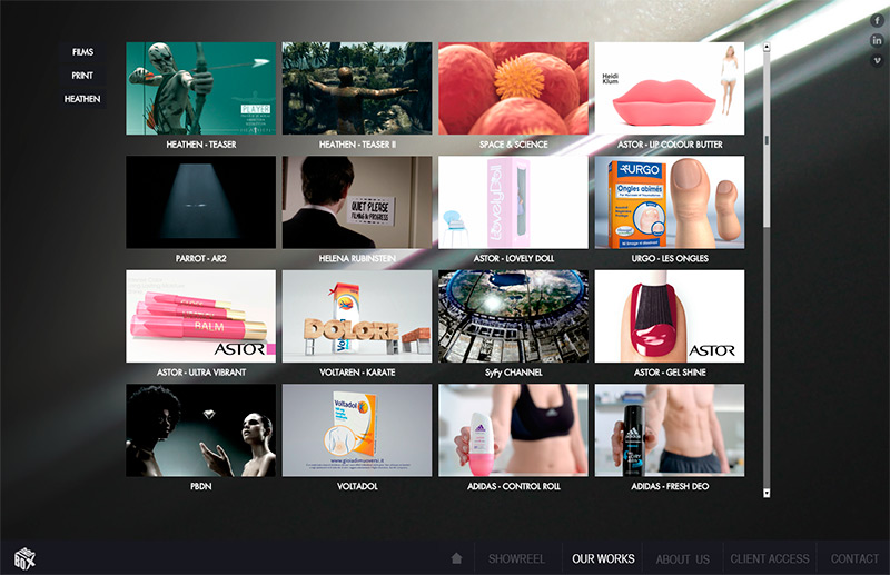 Création du site internet pour The Box Studio, collectif basé à Paris, spécialisé dans le trucage, le graphisme et la conception d'images 3D. Les membres de ce collectif s'appuient chacun sur une longue expérience technique et artistique à travers la télévision, la publicité et le cinéma. Graphisme Florence Rampin. Animation Cédric Massart.